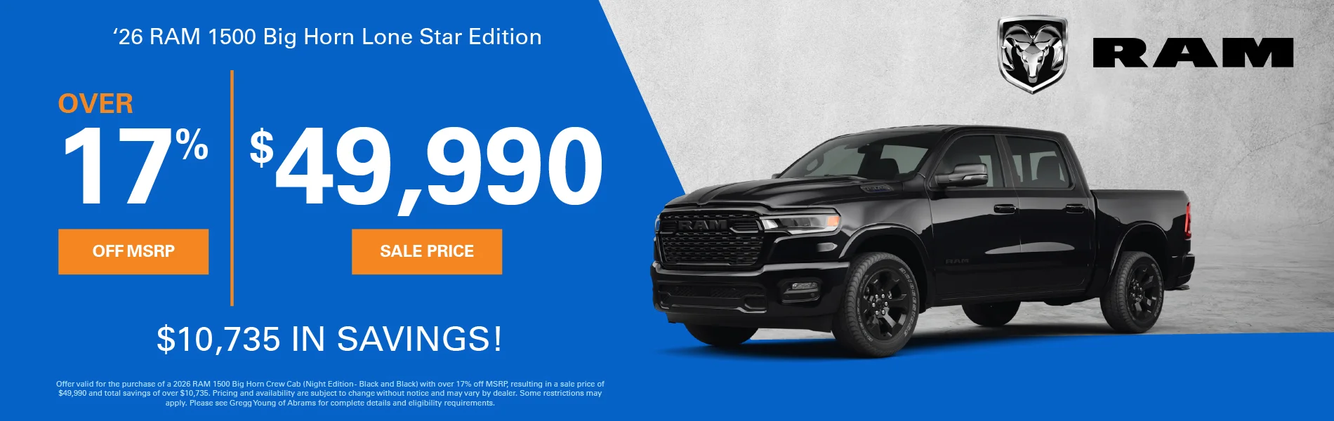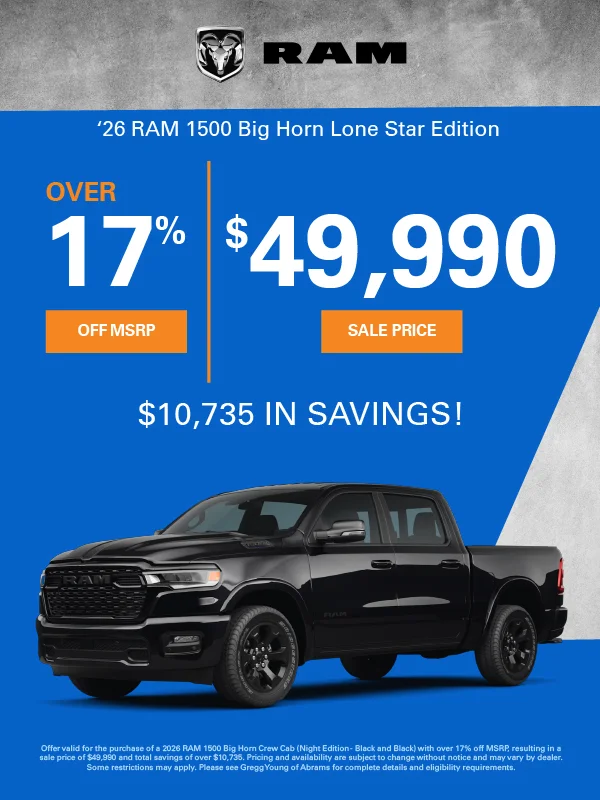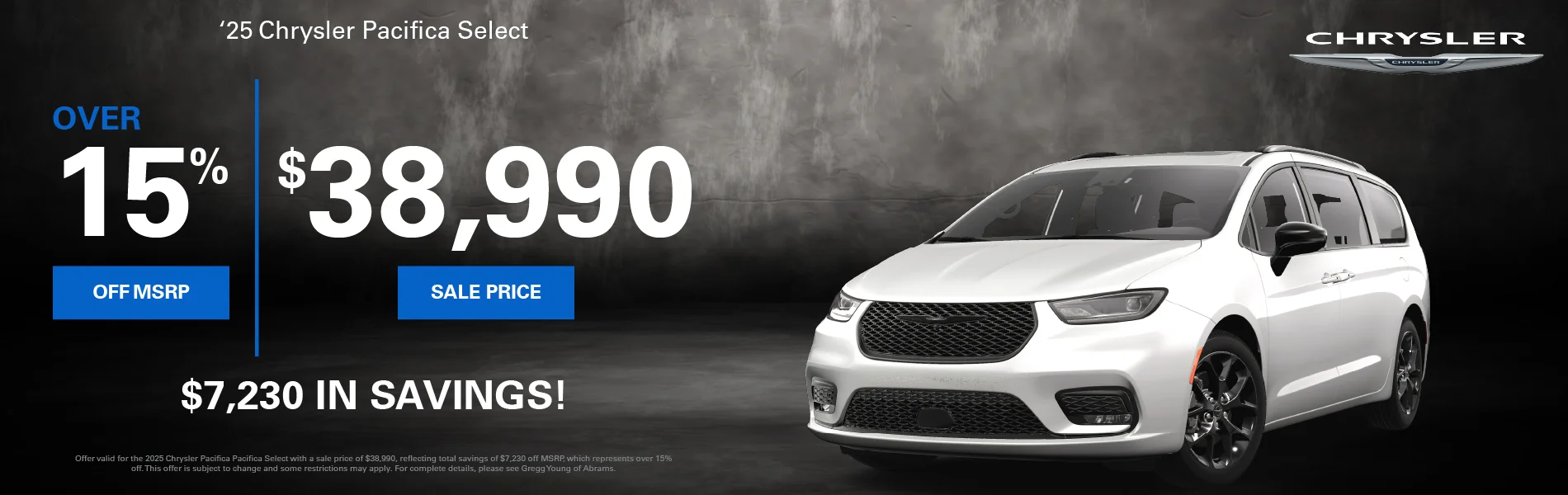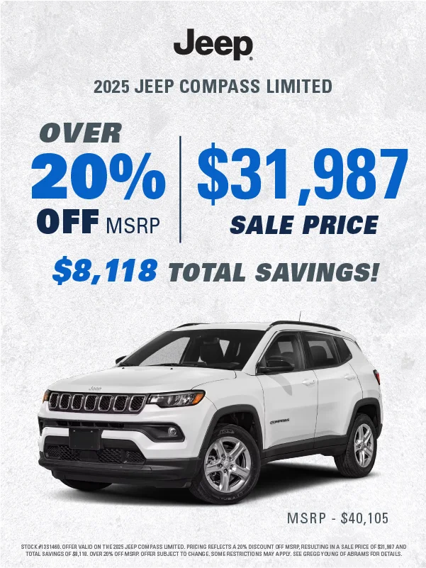 Welcome to Gregg Young Chrysler Dodge Jeep Ram of Abrams, your hometown destination for new Chrysler Dodge Jeep RAM vehicles, affordable used cars, and certified Mopar service in Abrams, Wisconsin. Conveniently located on County Road EE, our dealership proudly serves Abrams, Green Bay, Oconto, Marinette, and surrounding communities in Northeast Wisconsin.